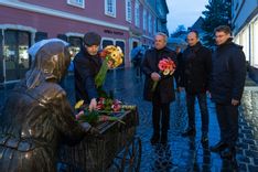 A köszöntők után Cser-Palkovics András és Földi Zoltán Vargha Tamás országgyűlési képviselővel és Lehrner Zsolt alpolgármesterrel, a Belváros önkormányzati képviselőjével együtt virágot vittek Kati néni szobrához és elhelyezték a Felsővárosi Általános Iskola csokrát is.