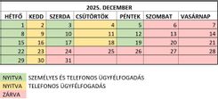 • 2025. december 19. (péntek): csak délelőtt, 7:30-tól 10:15-ig érhető el az ügyfélszolgálat.