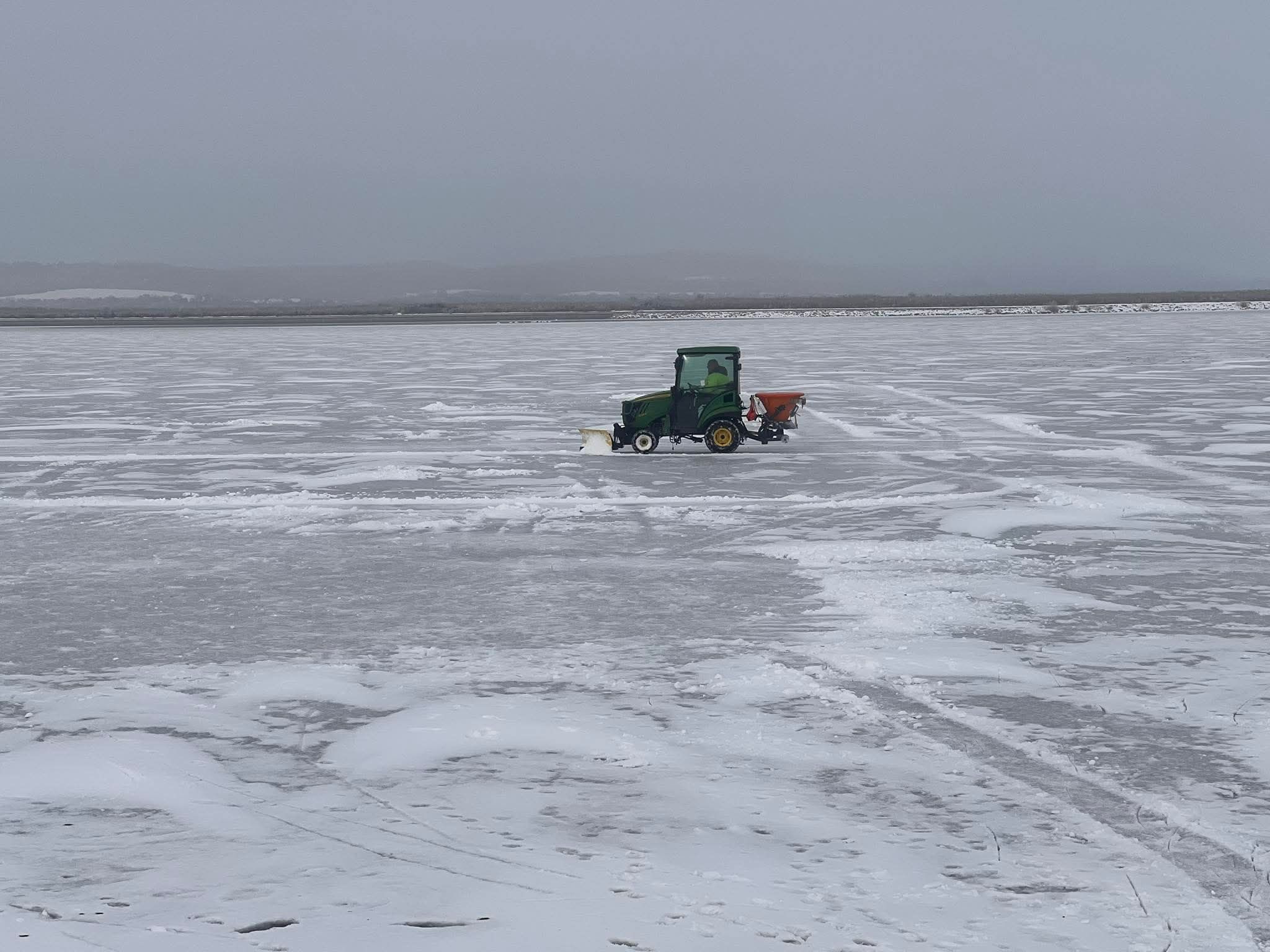 A Napsugár strandon már kisgéppel dolgoznak a jég felületének megtisztításán, de Gárdonyban is hókotróval tisztítják meg a jeget a hótól annak érdekében, hogy nyitásra minél jobb minőségűvé varázsolják pályát. Mindkét helyszínen nyitva lesznek az illemhelyek és a gárdonyi pályán egy büfé is várja a vendégeket.