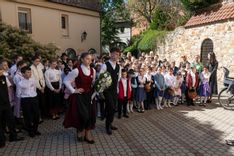 A vidám menet végállomása a 2022-ben felavatott Kossuth utcai Székesfehérvári Németek Emléktáblája volt, ahol Lánczosné Sági Ágnes Ilona felidézve a magyarországi német népviseletek napja lényegét, majd virágcsokorral is megemlékeztek a jeles napról.