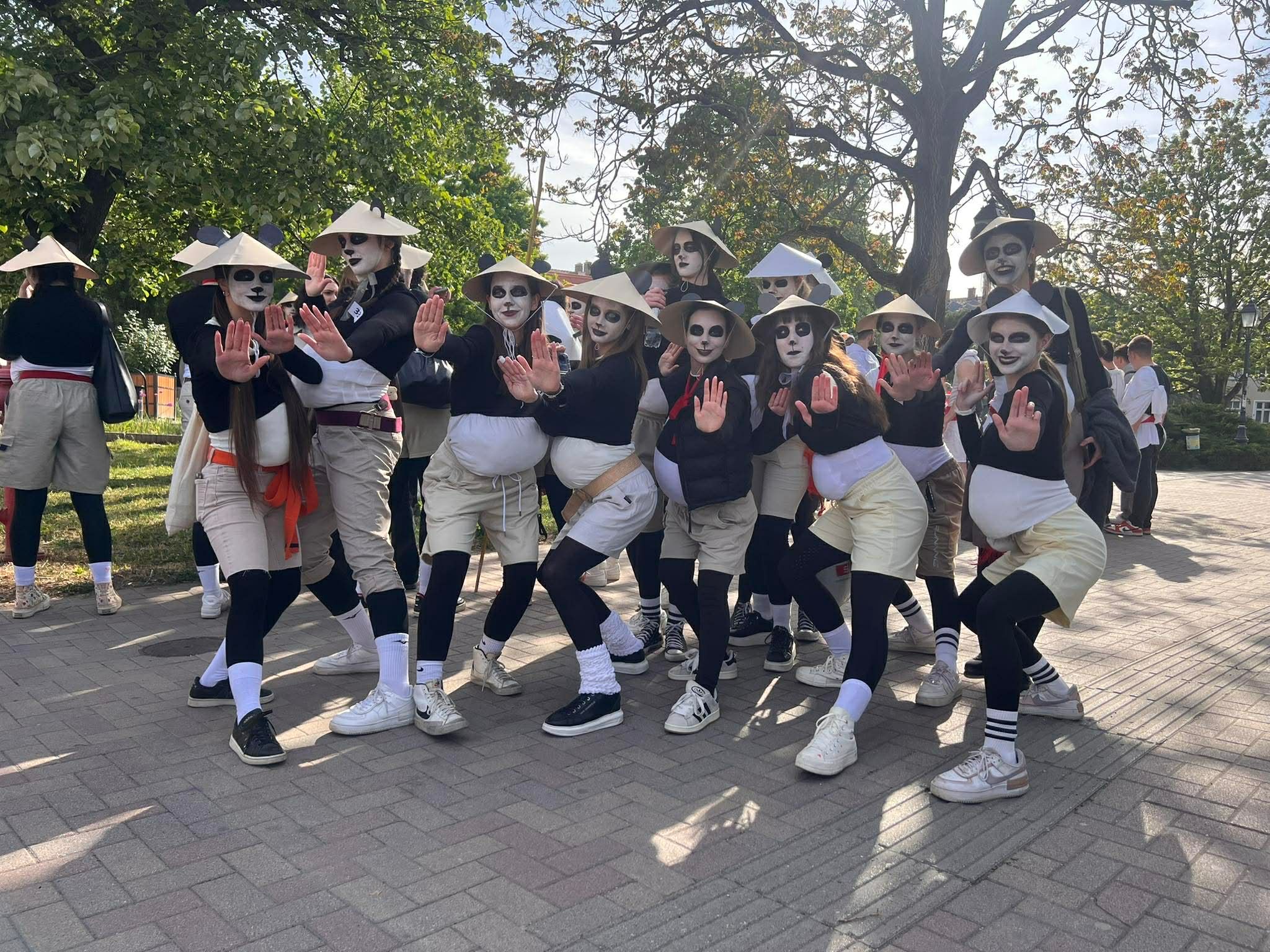 Az I. István iskola fiataljai például a riói karneválok hangulatát hozták el az idei Bolondballagásra, a Teleki Blanka Gimnázium végzősei pedig "igazságosztó aktivistának" maszkírozták magukat, utóbbi Kung-Fu-Pandák nagy sikert arattak a járókelők körében is.